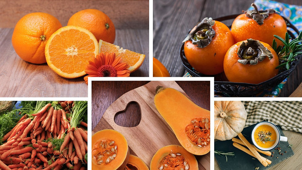 Becky Miller: Maybe some less traditional holiday colors, but ones that are still great if you like to have a colorful palette is our orange foods like carrots, citrus, pumpkin, and sweet potatoes. They are great this time of year in soups, um, glazed root vegetables like carrots.